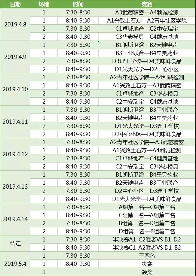 “五四青年杯”賽程安排