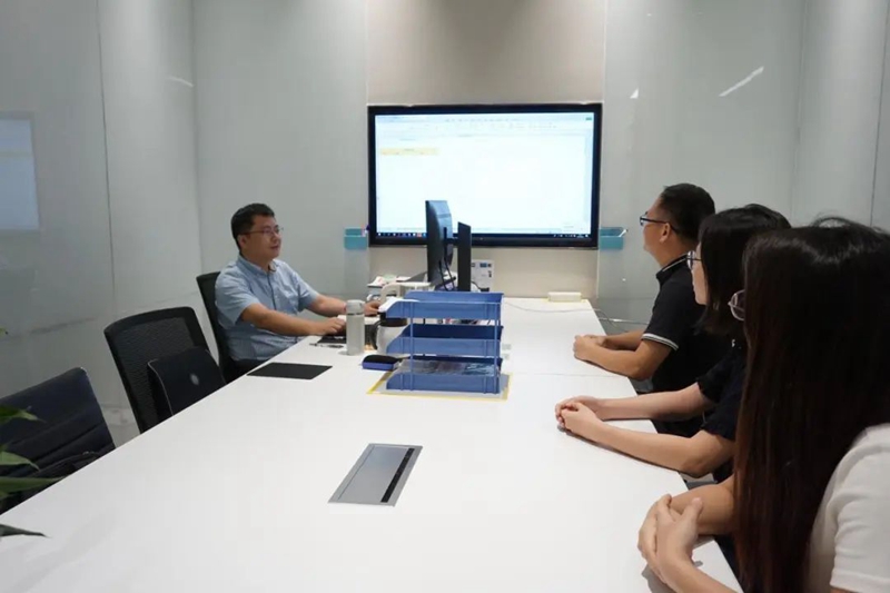 姜敏(左一)與團(tuán)隊(duì)討論工作