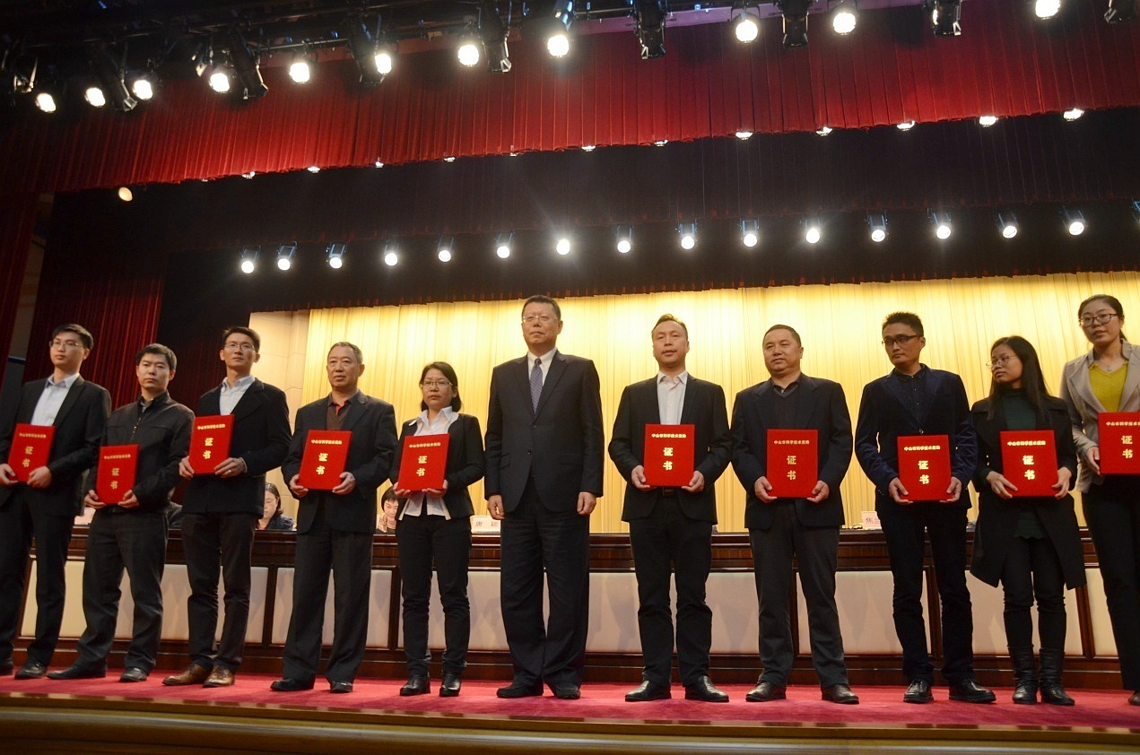 焦蘭生市長為“中山市科學(xué)技術(shù)進(jìn)步獎一等獎”獲獎單位頒獎