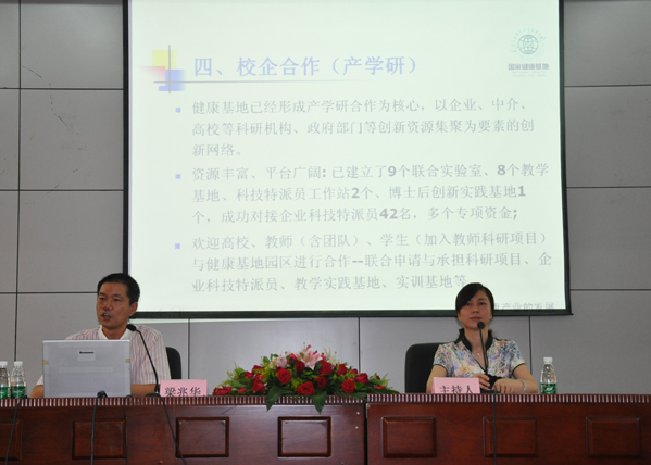 作為中山市健康科技產(chǎn)業(yè)基地發(fā)展有限公司總監(jiān),梁兆華向同學(xué)們介紹了中山健康基地的平臺(tái)優(yōu)勢(shì)和人才需求,歡迎同學(xué)們關(guān)注健康基地,在健康基地尋找實(shí)踐機(jī)會(huì),為即將畢業(yè)的健康醫(yī)藥專業(yè)的學(xué)生提供了豐富的就業(yè)信息。